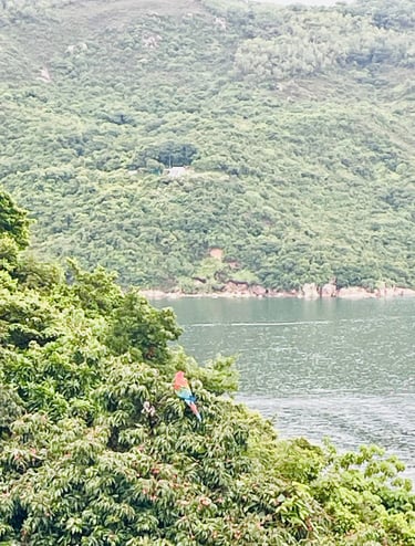 Photographing Charlie the village parrot in a meditative moment @MaggieHongKong