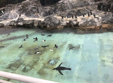 My favourite moment was just around the corner without even knowing. Thinking we have finished the tour inside and we are living the park, we stepped outside. Only to learn that everyone is viewing the penguins island and their swimming pool!.