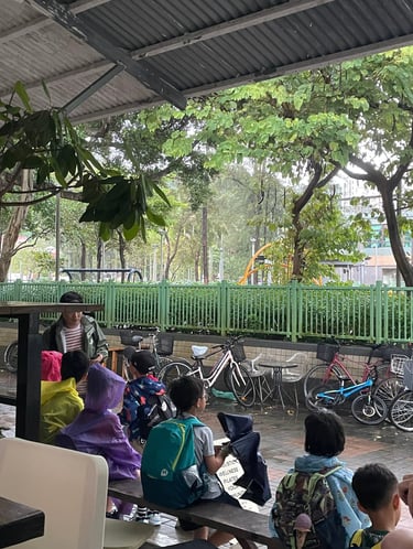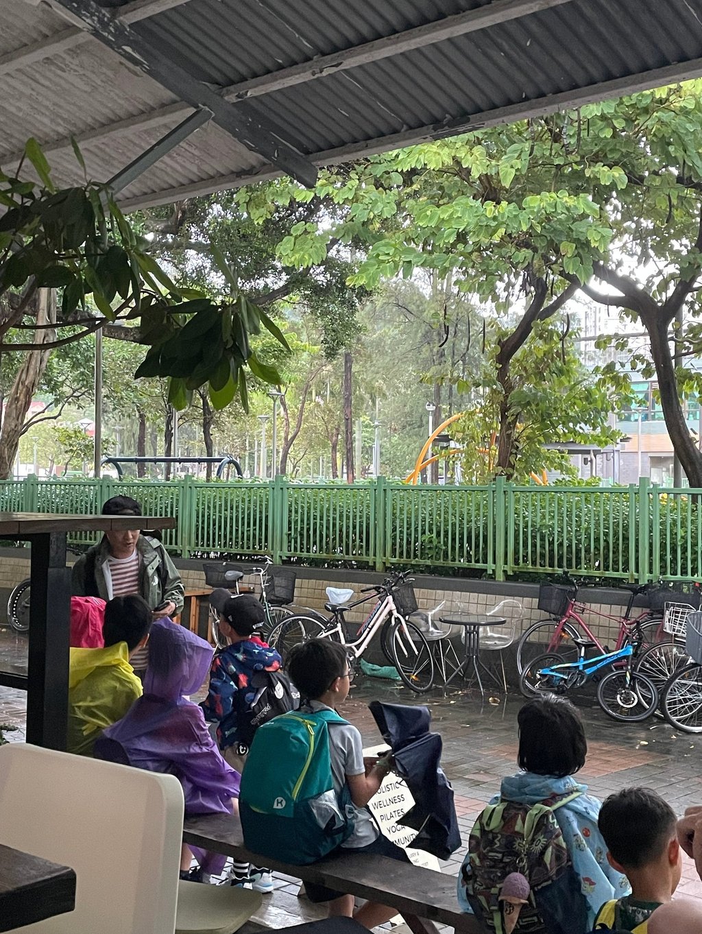 It is not the rain any longer in charge of how should we spend the day. It was us, moving forward and embracing it. It was a collaboration. Coffee shops doing the work, not matter the elements. Parents still taking their kids out for a nice breakfast, teachers still taking their nature walk group for a lesson.