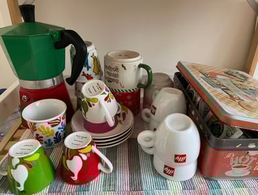 The living-kitchen means that all that comes into the house, groceries, repair work, clothes mending, takes up the stage for a while and disappear , afternoon coffee time means inviting neighbours, some fruits, chocolates and some biscuits.
